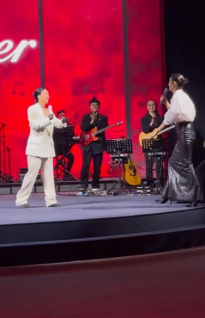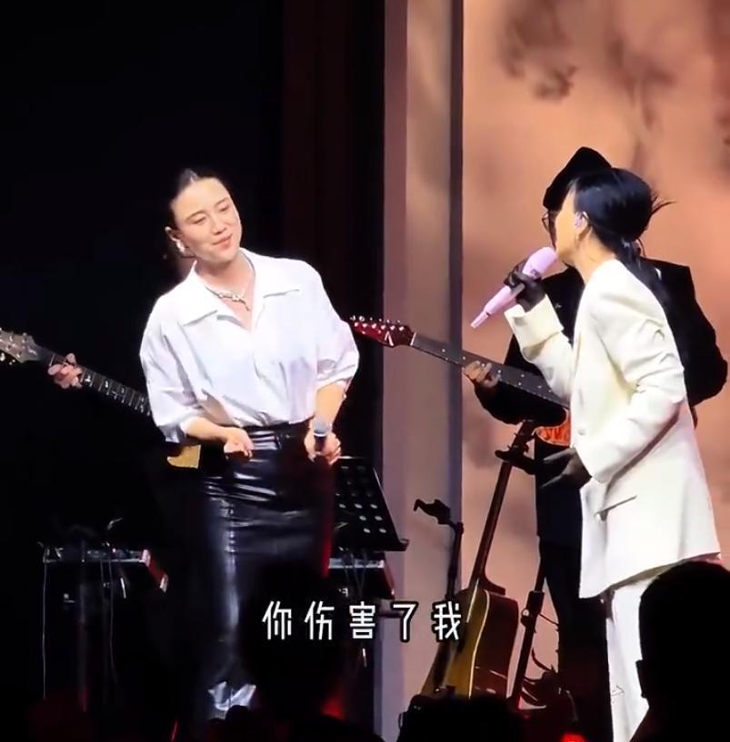 俩人大气不喘地唱完,那英自己先笑场了,这互动把高端晚宴硬生生变成了闺蜜 KTV,气氛好到爆棚。